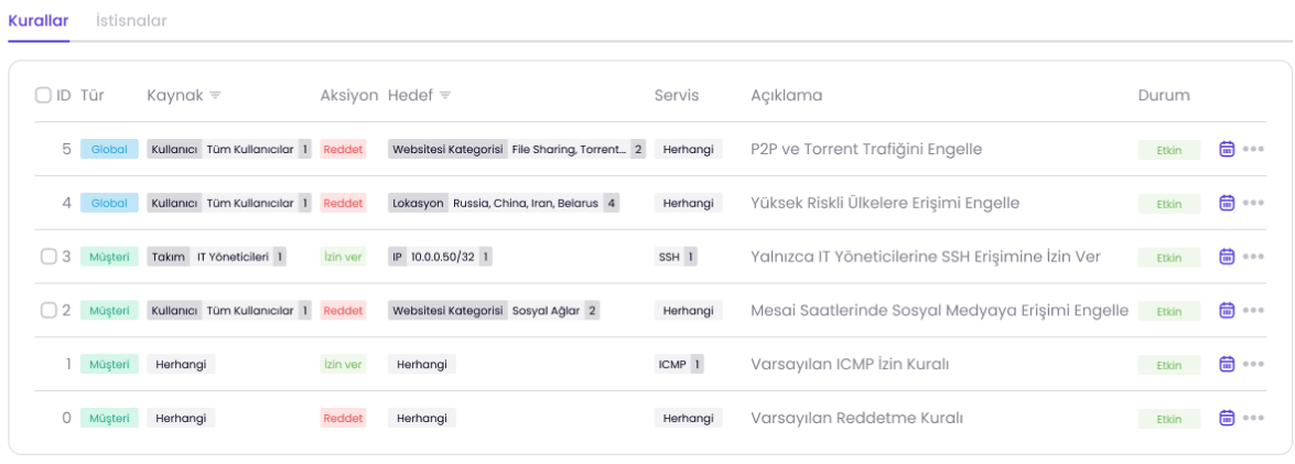 Politika değişiklikleri anında tüm lokasyon ve kullanıcılar için geçerli olur.