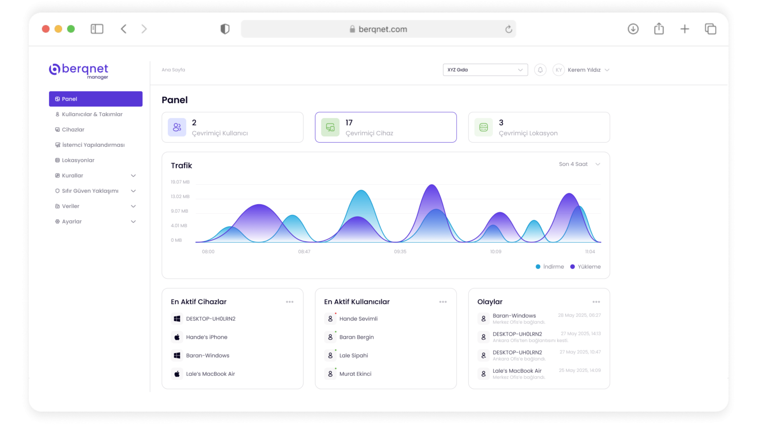Tüm kullanıcıları, ağ trafiğini ve güvenlik politikalarını tek bir bulut panelinden izlenip yönetin.